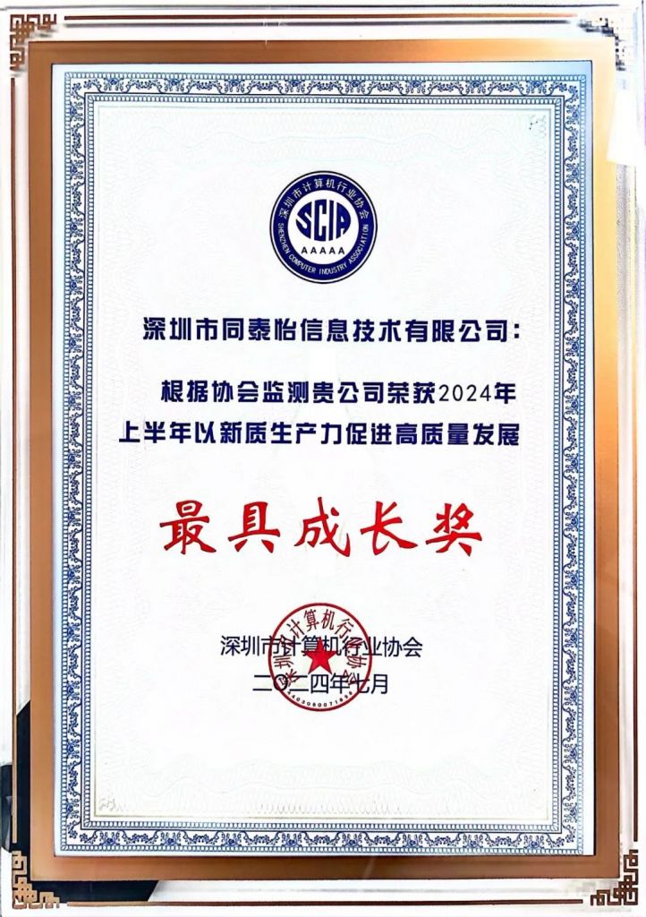 會議根據(jù)協(xié)會的運營監(jiān)測,對2024上半年高速成長的會員企業(yè)進行了表彰。同泰怡緊跟國家戰(zhàn)略,緊貼市場需求,生態(tài)賦能,產(chǎn)品創(chuàng)新,在以新質生產(chǎn)力促進高質量發(fā)展中表現(xiàn)突出,獲頒最具成長獎。